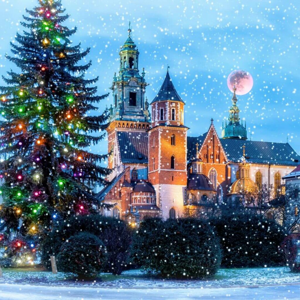 1η ημέρα: Πτήση για Κρακοβία – Περιήγηση πόλης – Basilica Mariacka – αγορά υφασμάτων – Κάστρο Wawel – Χριστουγεννιάτικες αγορές